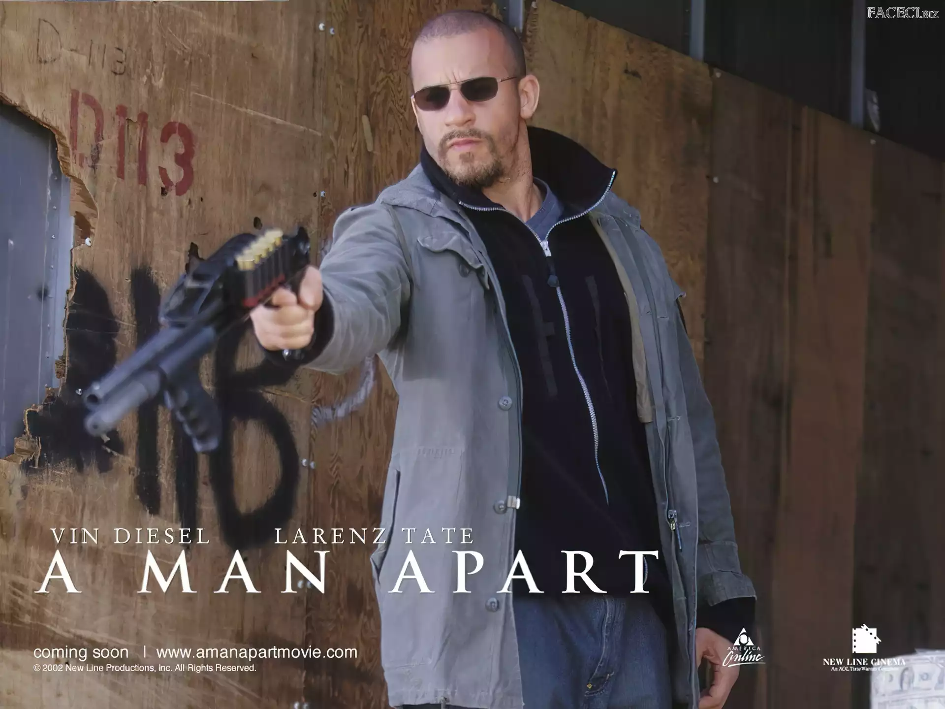 Vin Diesel, Film, Chronicles Of Riddick Vin Diesel, łańcuch Vin Diesel, broń Vin Diesel, pistolet Melanie Thierry, Vin Diesel, Babylon Ad Vin Diesel, twarz Vin Diesel, biała koszula Babylon Ad, Vin Diesel, okulary Vin Diesel, flaga Vin Diesel tatuaż, Vin Diesel, czarna kurtka Vin Diesel, szara koszulka Aktor, Vin, Diesel ciemne oczy, Vin Diesel, twarz